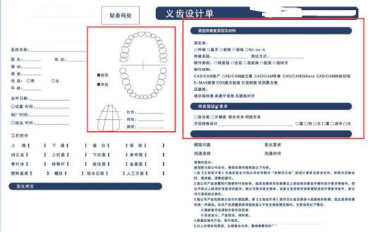 备牙 取模 填写加工单(与印模一同寄加工厂)加工厂做好假牙后,患者带牙