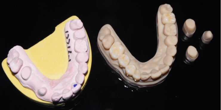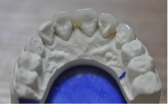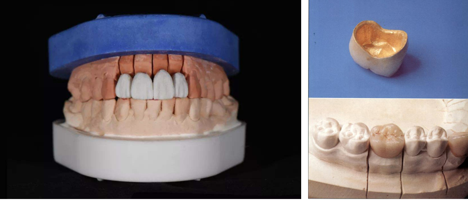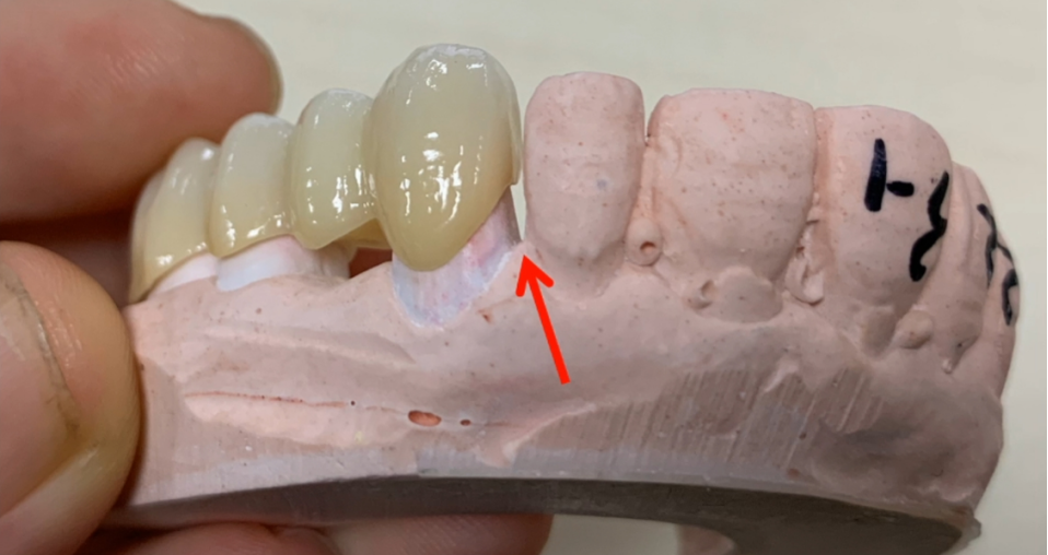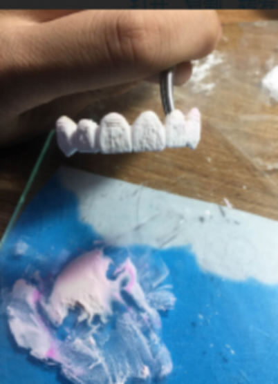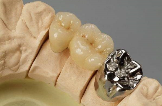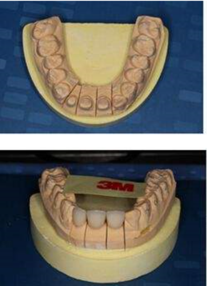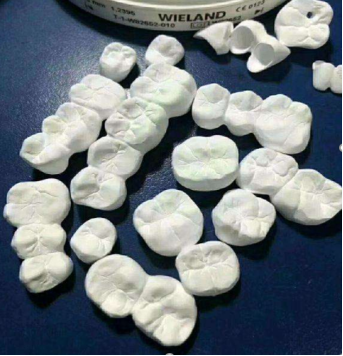 (2)内冠:没有完整的牙齿形态,使用2种材料做全冠。(不会最终只要内冠,只是材料的区分,先做一层没有完成形态的,随后人工堆瓷修整烧结完成完整的牙冠。