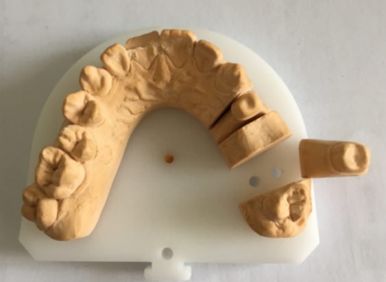 未分模:未分割模型,代型(基牙、修复牙位)不能从整体得牙列模型上分离取下的模型。